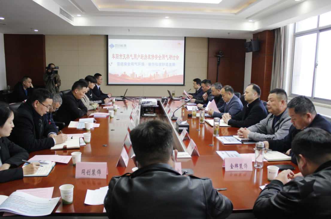 2023年4月6日,阜陽管理中心主動邀請阜陽市裝修行業(yè)協(xié)會、物業(yè)行業(yè)協(xié)會及阜陽市知名度較高的維度裝飾、藝亮裝飾、山水裝飾等15家裝飾公司,天方物業(yè)等3家物業(yè)公司,針對裝修過程導(dǎo)致的居民廚房類隱患居高不下,整治難度較大,居民反應(yīng)強烈的問題,召開阜陽市居民廚房裝修安全用氣研討會。主動回應(yīng)社會關(guān)切,通過研討會,將用戶端燃氣安全從源頭抓起。同時宣傳廚房裝修相關(guān)法律法規(guī)標準,減少因裝修導(dǎo)致居民廚房類隱患的增加,避免矛盾激化與不良影響。會議還特別邀請阜陽市燃氣管理處武少棟、胡家好,阜陽市房產(chǎn)局綜合勘察科周國剛參加會議。阜陽管理中心執(zhí)行董事孟慶貴、副總經(jīng)理何海谷及客服條線管理人員參加交流座談。