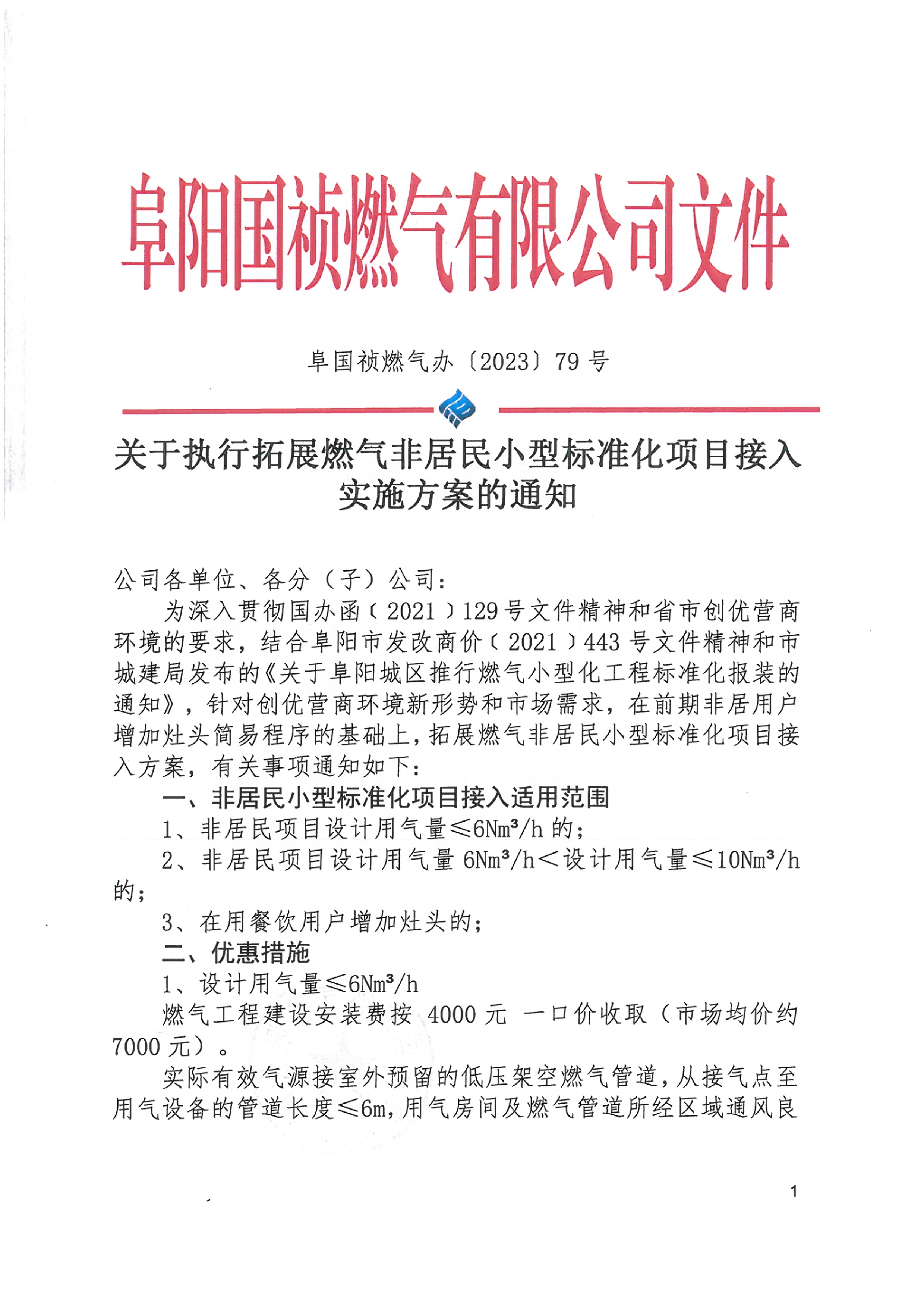 關(guān)于執(zhí)行拓展燃氣非居民小型標(biāo)準(zhǔn)化項目接入實施方案的通知