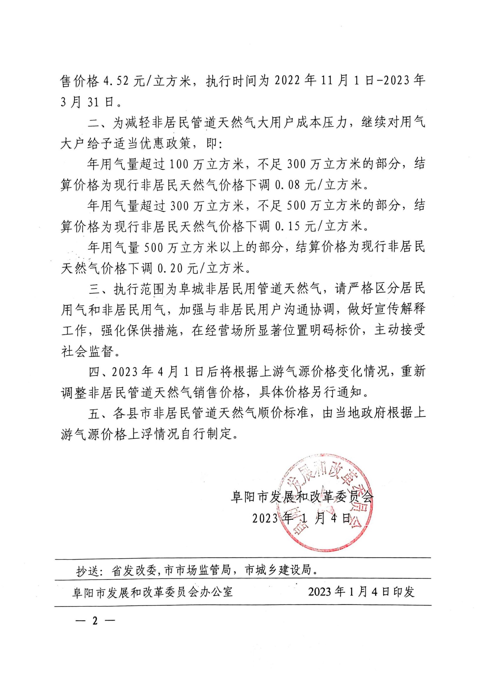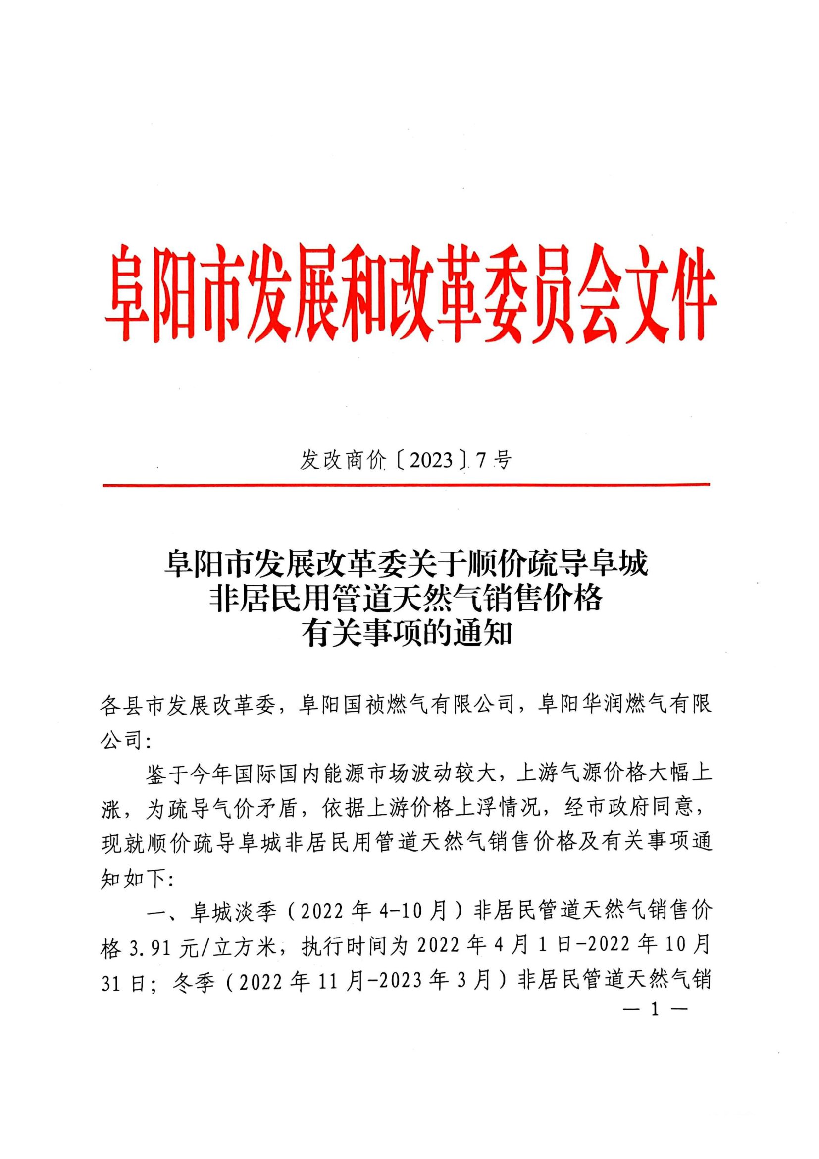 阜陽市發(fā)展改革委關(guān)于順價(jià)疏導(dǎo)阜城非居民用管道天然氣銷售價(jià)格有關(guān)事項(xiàng)的通知