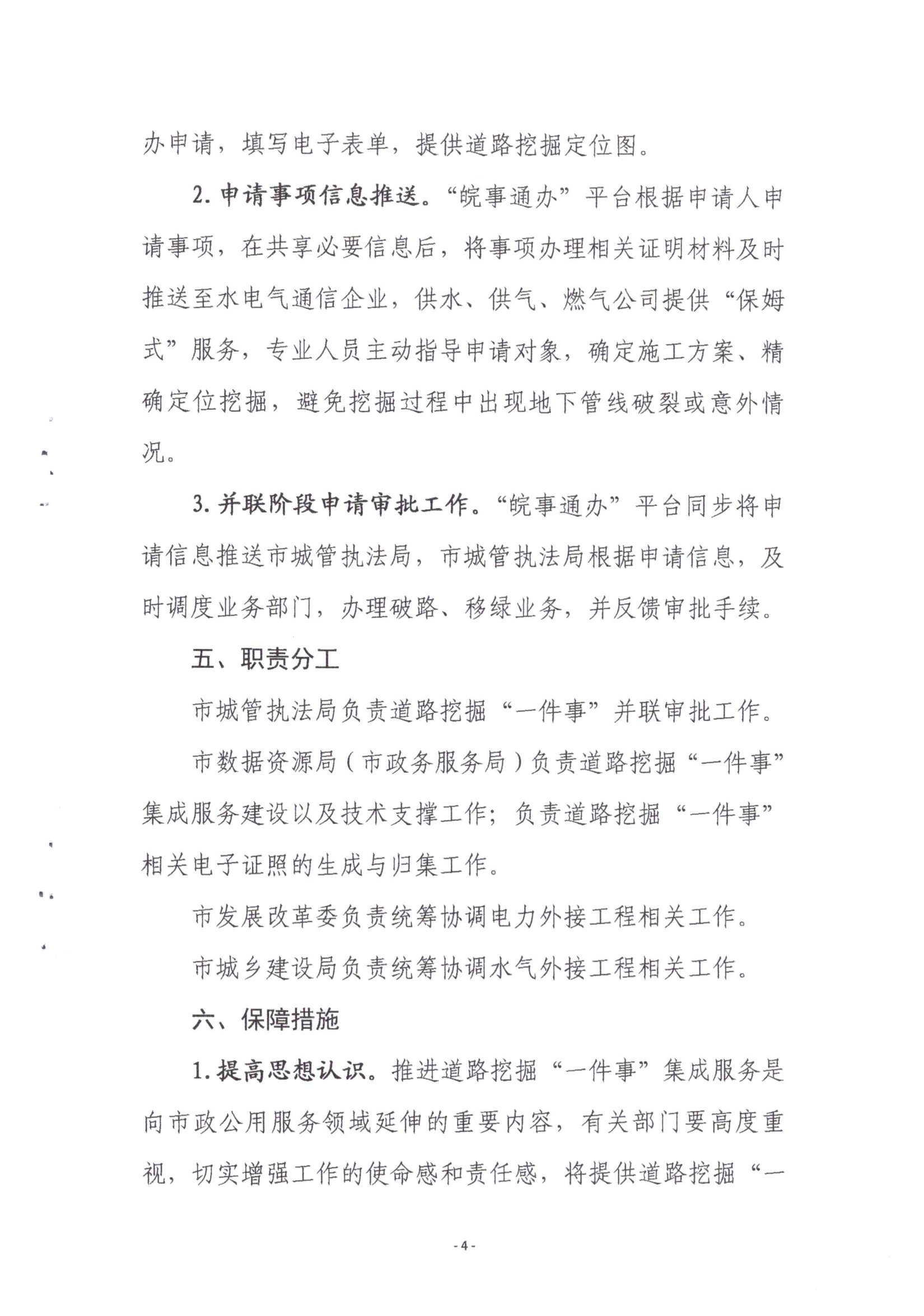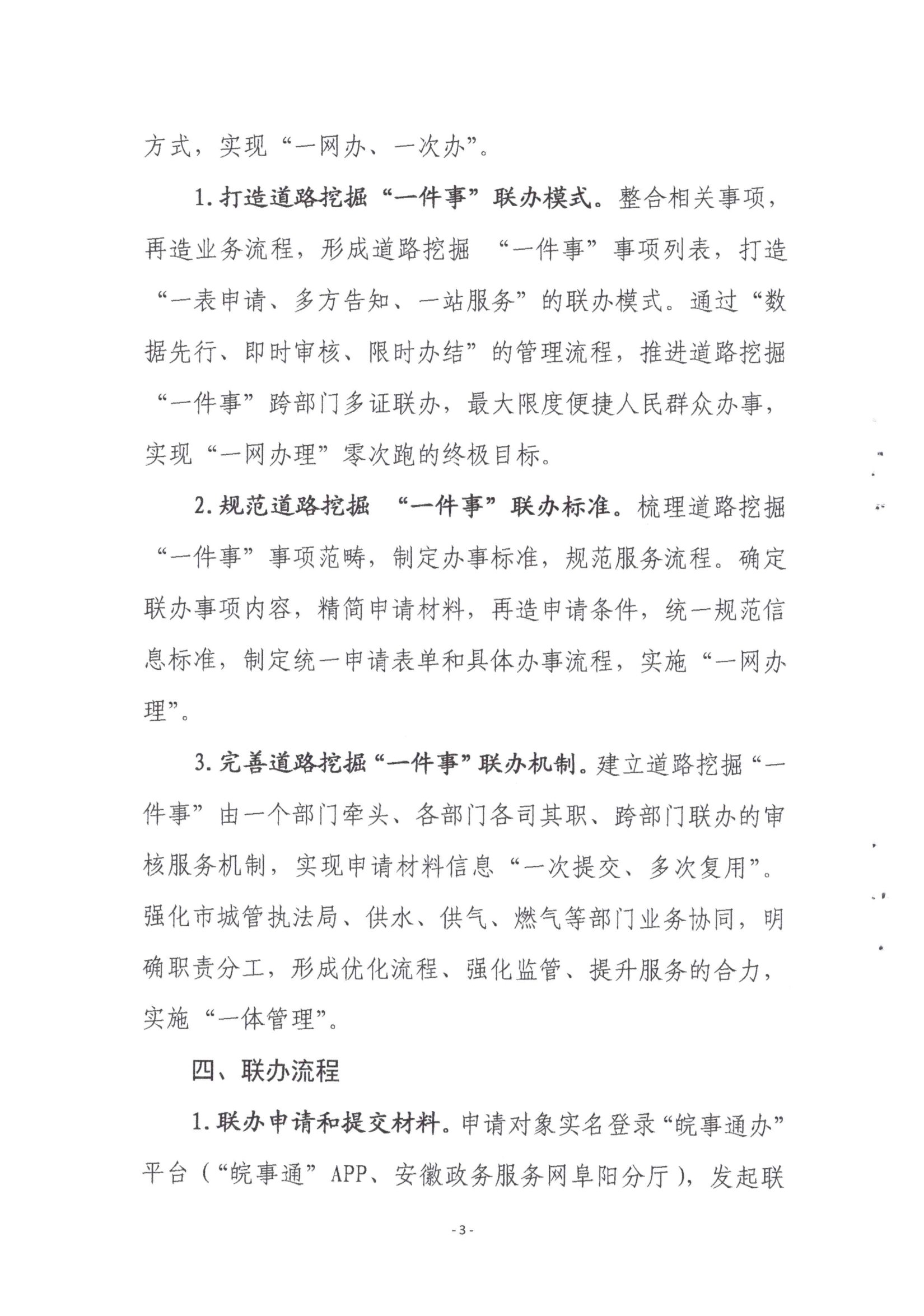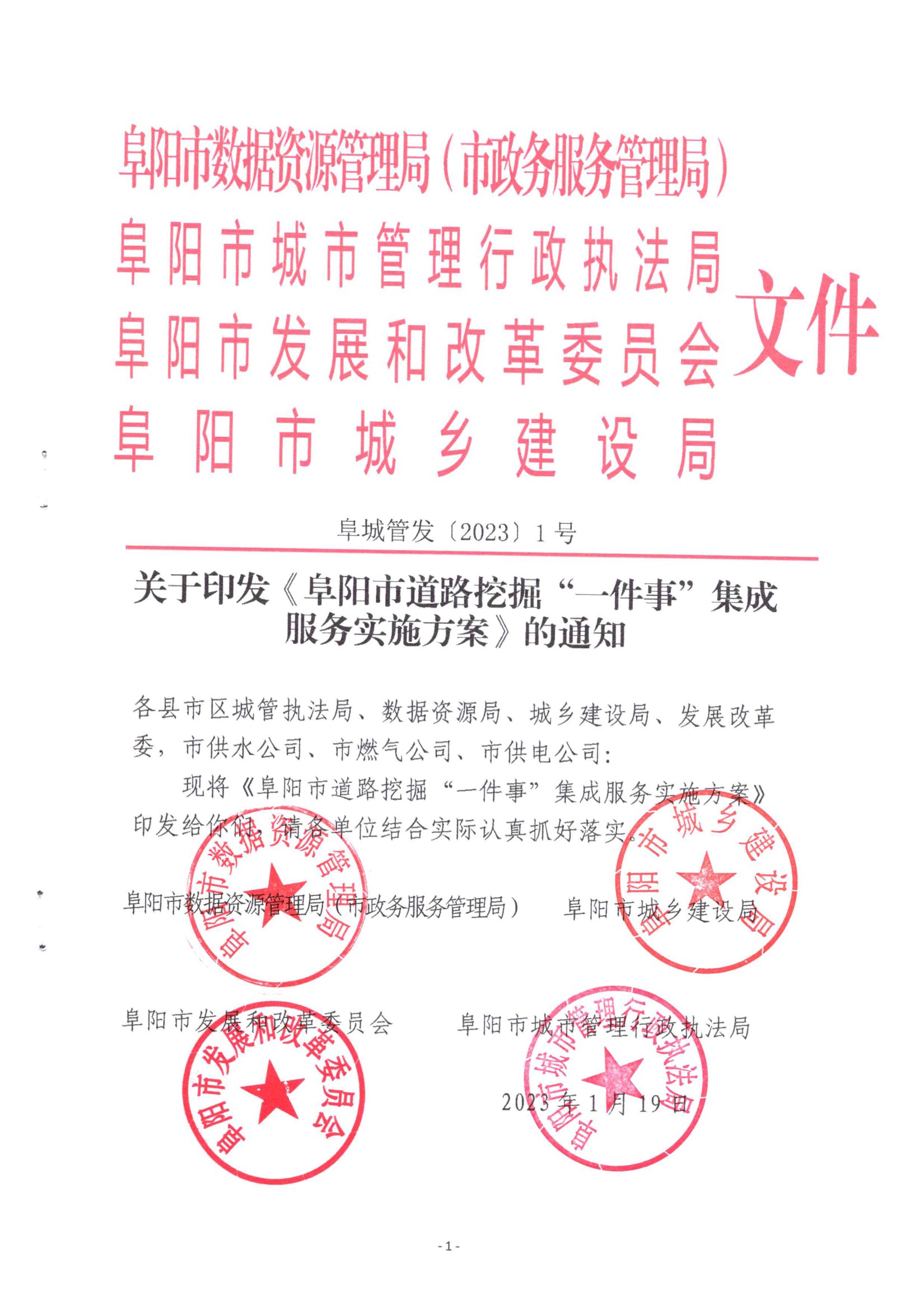 關(guān)于印發(fā)《阜陽市道路挖據(jù)“一 件事”集成服務(wù)實(shí)施方案》的通知