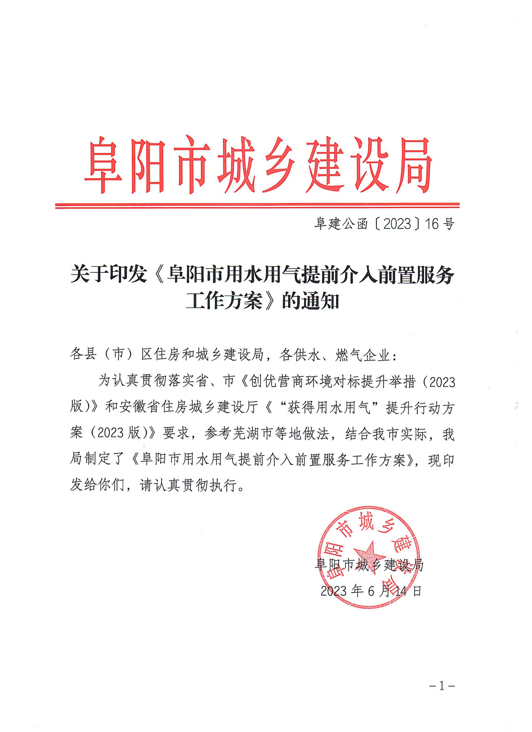 關(guān)于印發(fā)《阜陽市用水用氣提前介入前置服務(wù)工作方案》的通知
