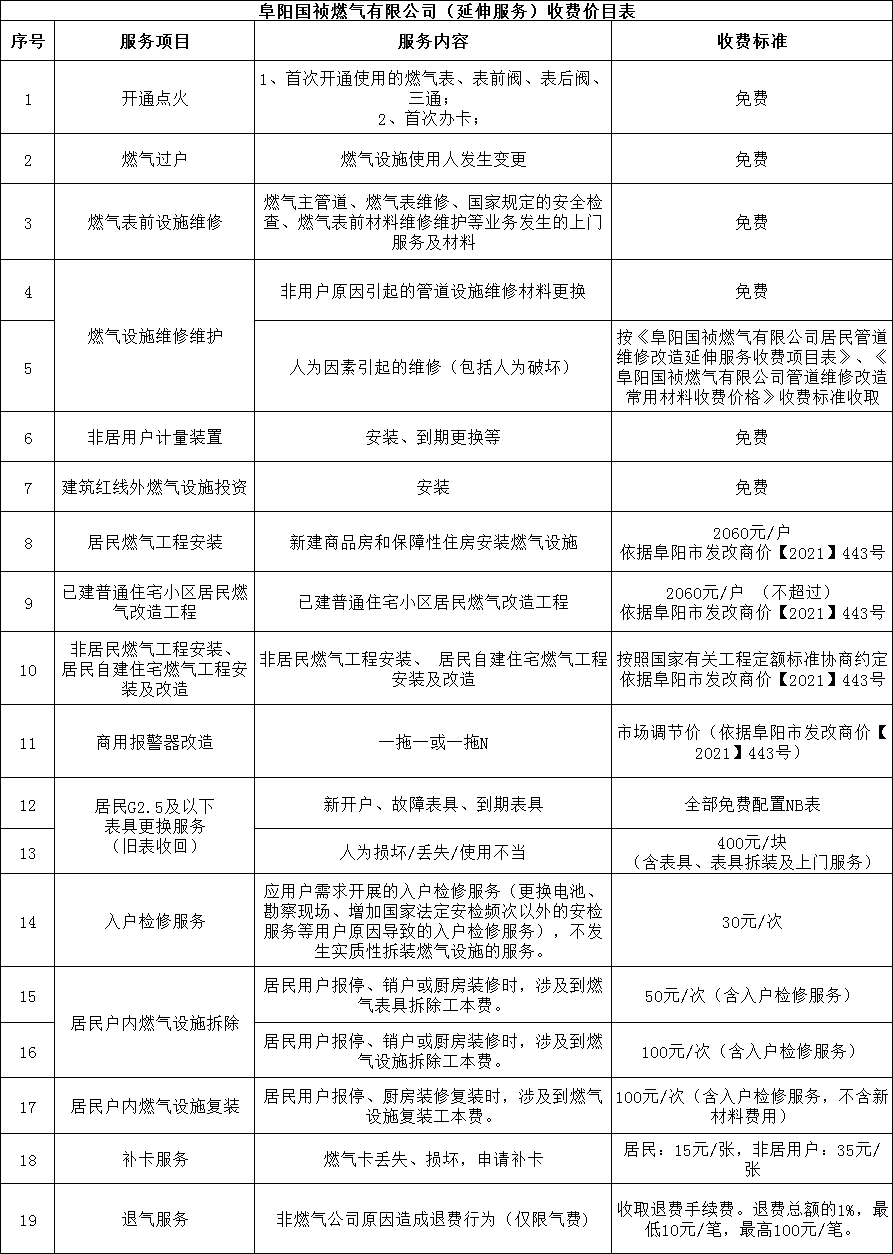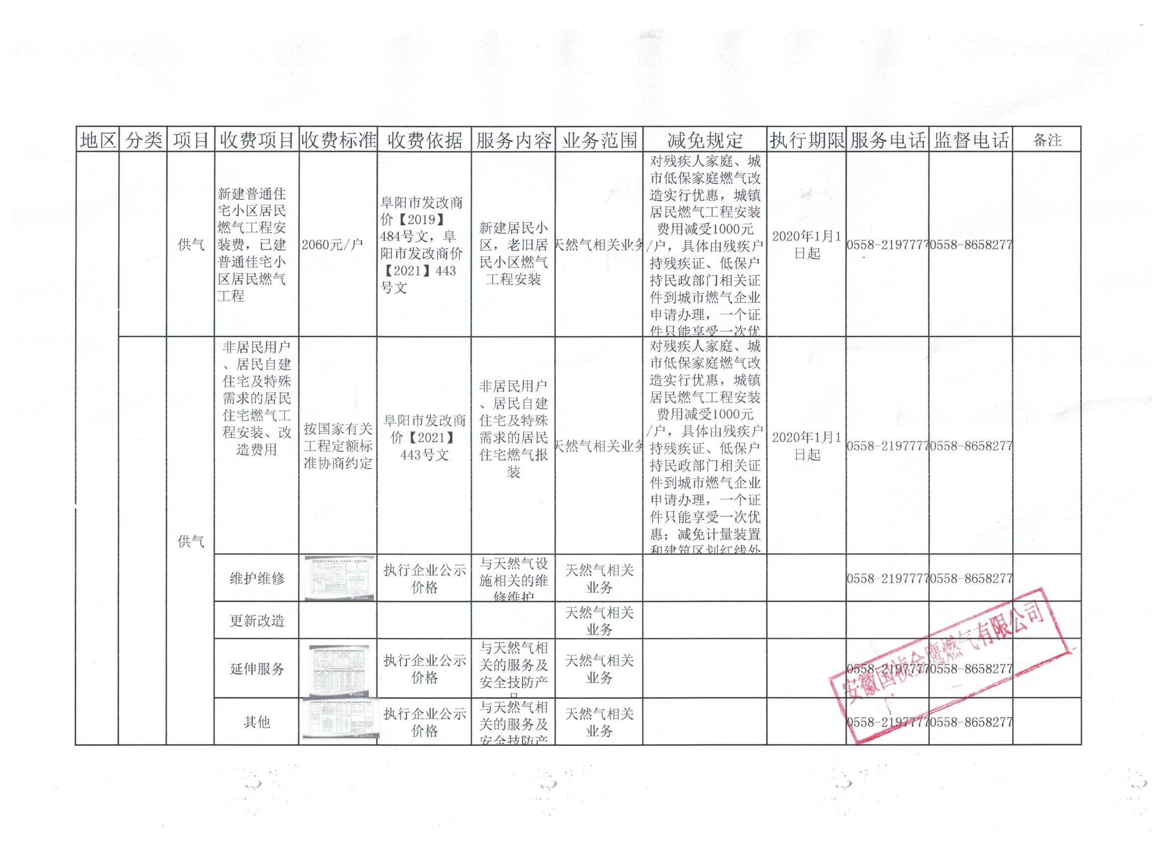 潁上燃?xì)怃N售價(jià)格、各類收費(fèi)明細(xì)及收費(fèi)依據(jù)