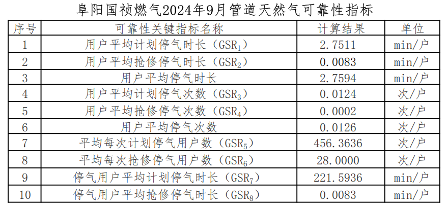 2024年9月阜陽(yáng)國(guó)禎燃?xì)庥邢薰竟饪煽啃躁P(guān)鍵指標(biāo)數(shù)據(jù)