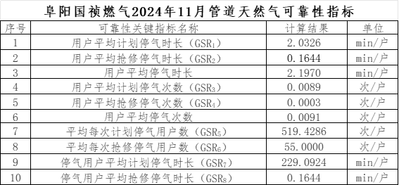 2024年11月阜陽(yáng)國(guó)禎燃?xì)庥邢薰竟饪煽啃躁P(guān)鍵指標(biāo)數(shù)據(jù)