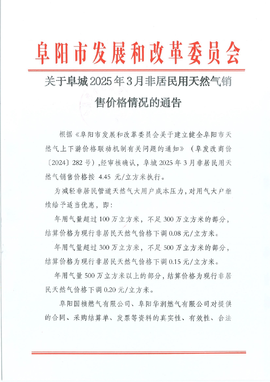 阜城2025年03月非居民用天然氣銷售價(jià)格情況的通知