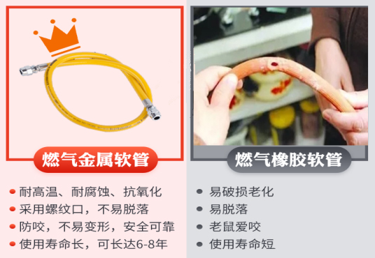 2、橡膠軟管的使用年限只有18個(gè)月,且易老化、龜裂、鼠咬、使用壽命短,導(dǎo)致膠管漏氣;而不銹鋼波紋軟管的使用壽命達(dá)到8年,且耐高溫、防鼠咬、連接牢固。