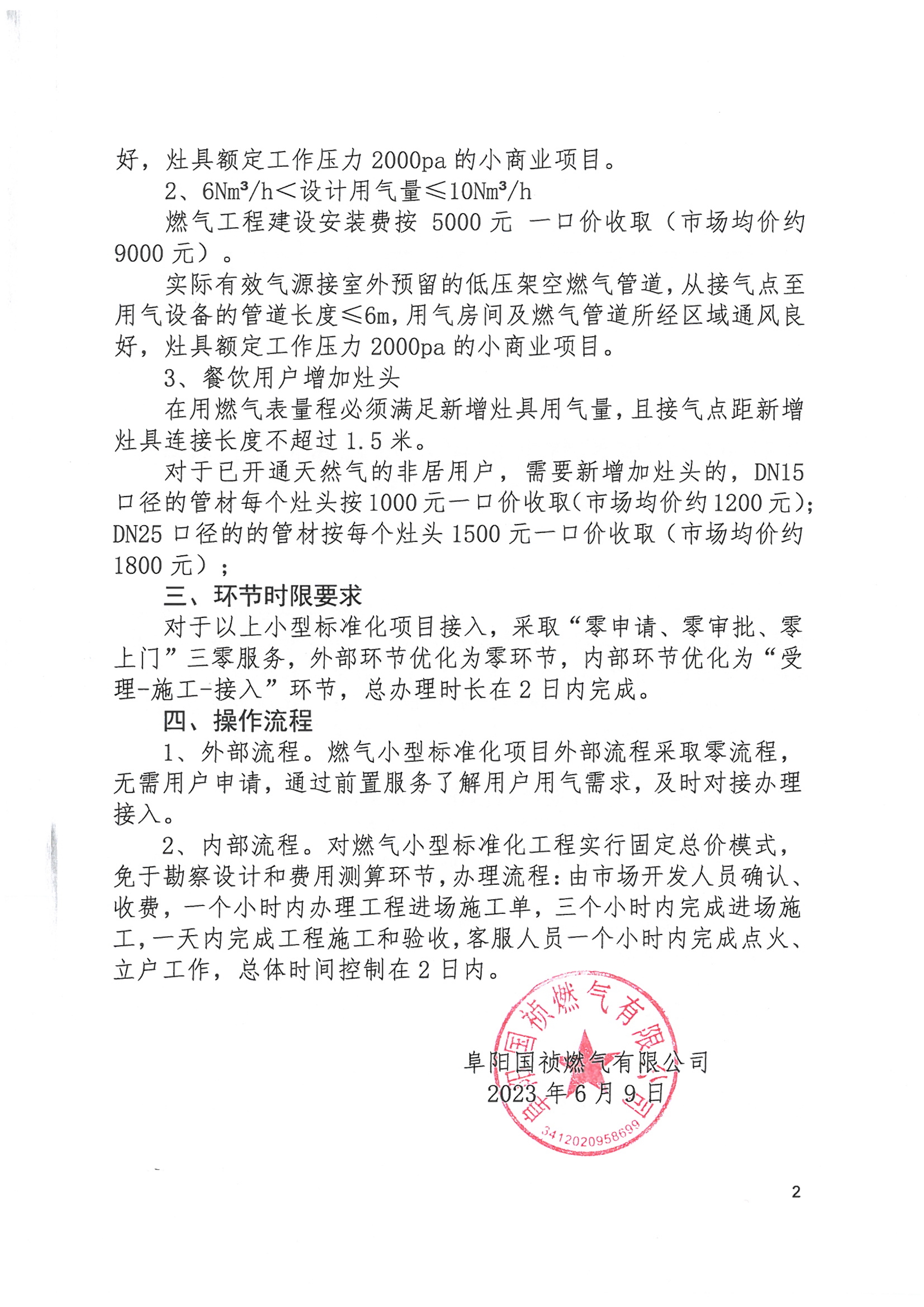 關(guān)于執(zhí)行拓展燃氣非居民小型標(biāo)準(zhǔn)化項目接入實施方案的通知