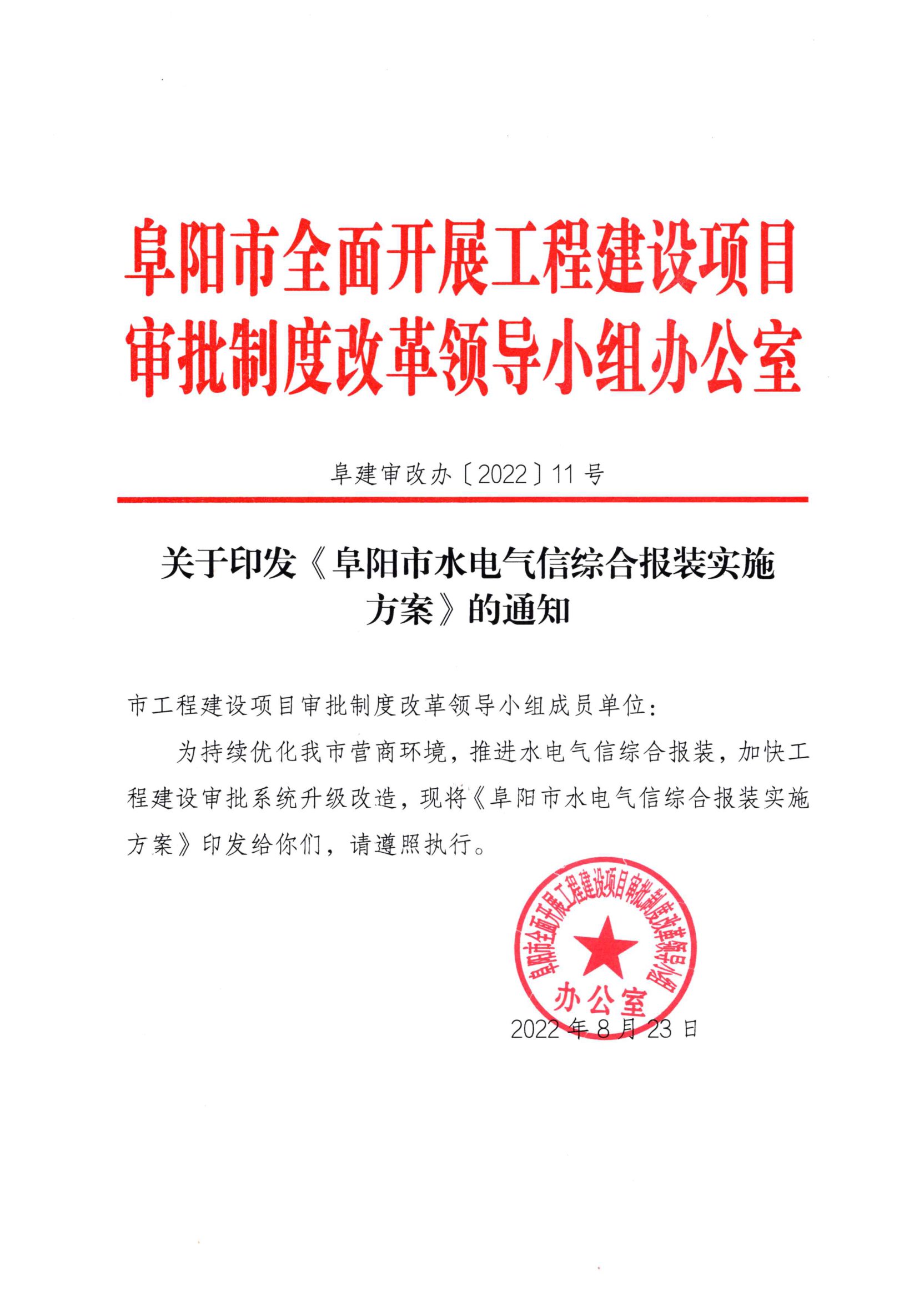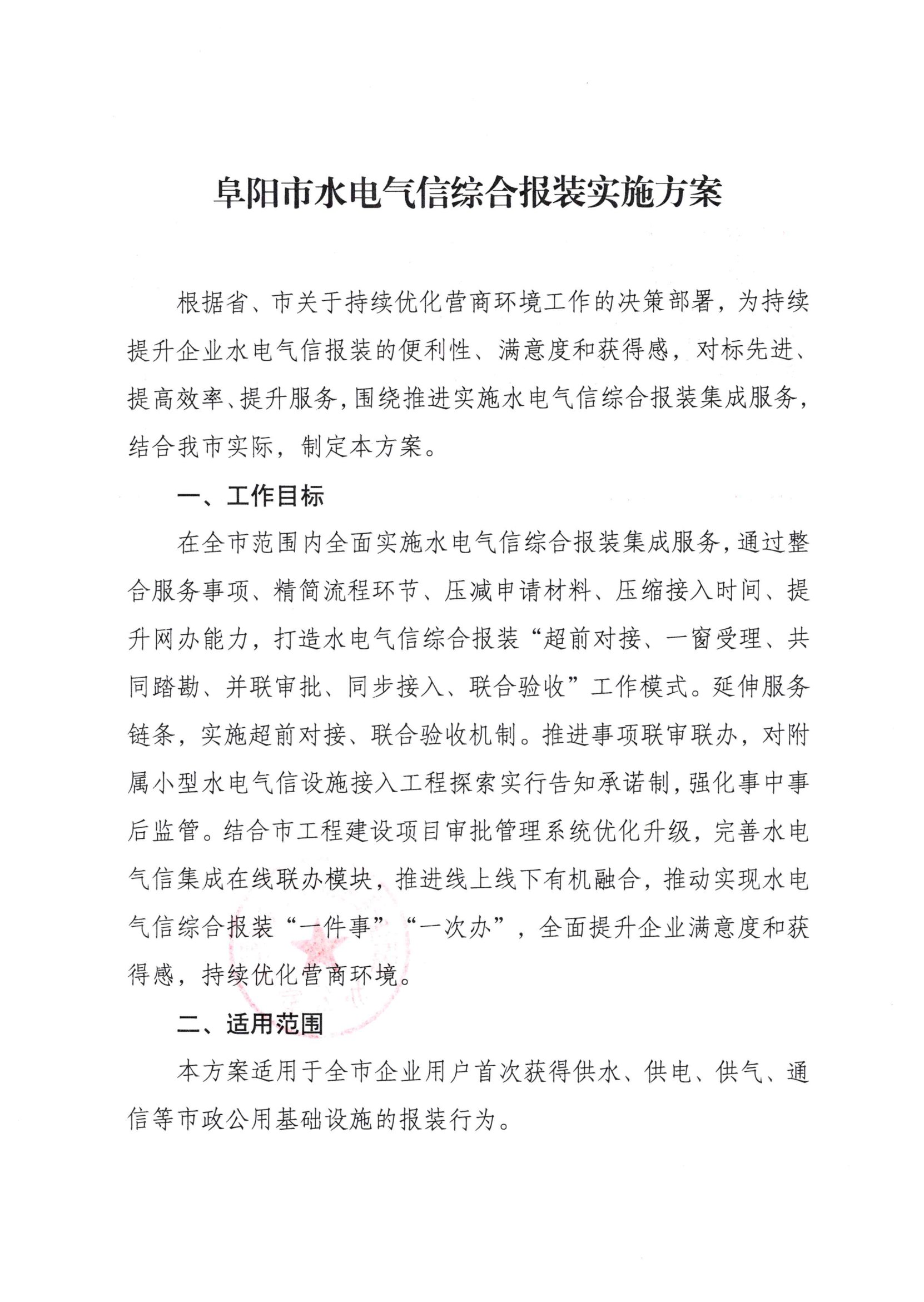 關(guān)于印發(fā)《阜陽市水電氣信綜合報(bào)裝實(shí)施方案》的通知