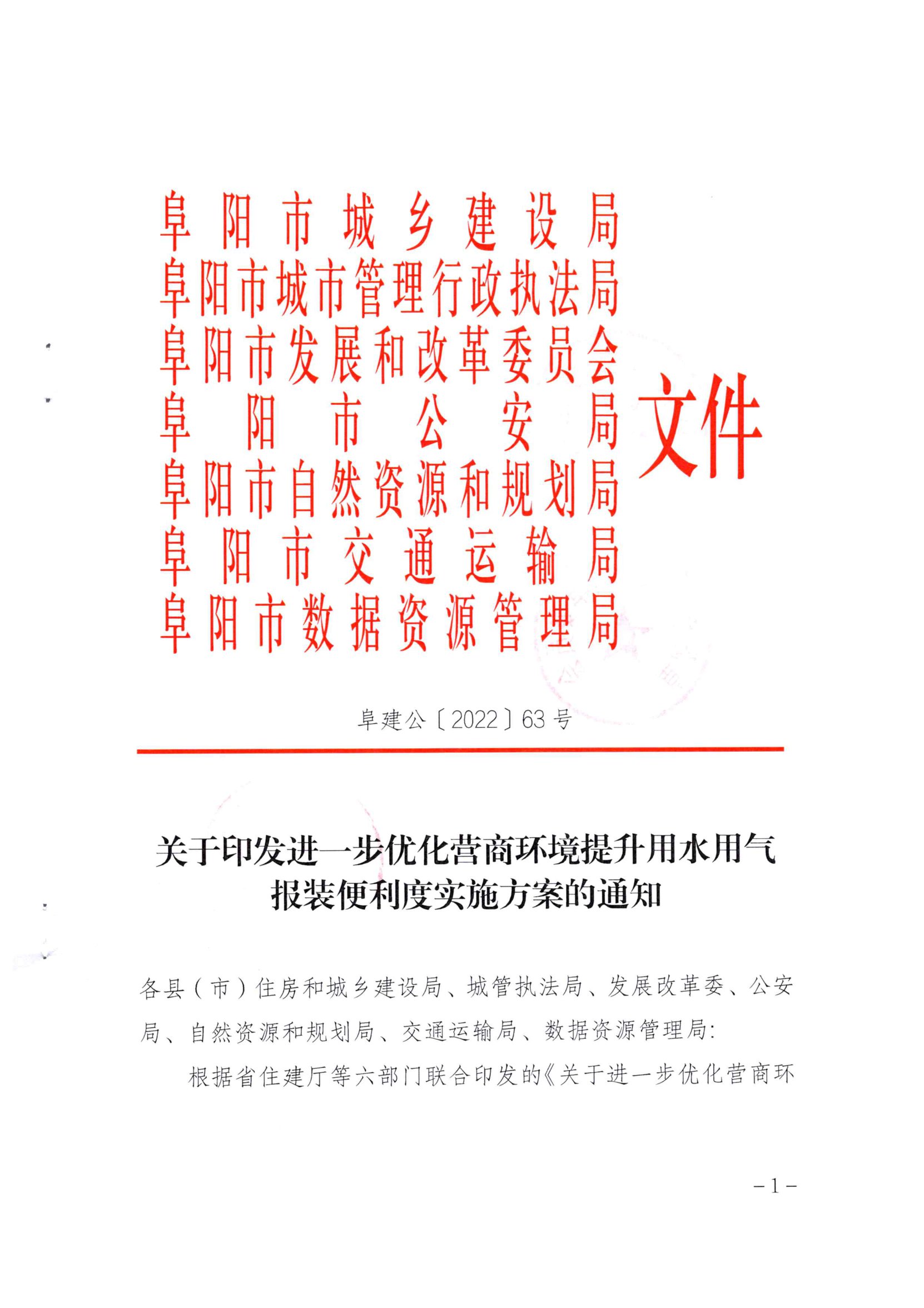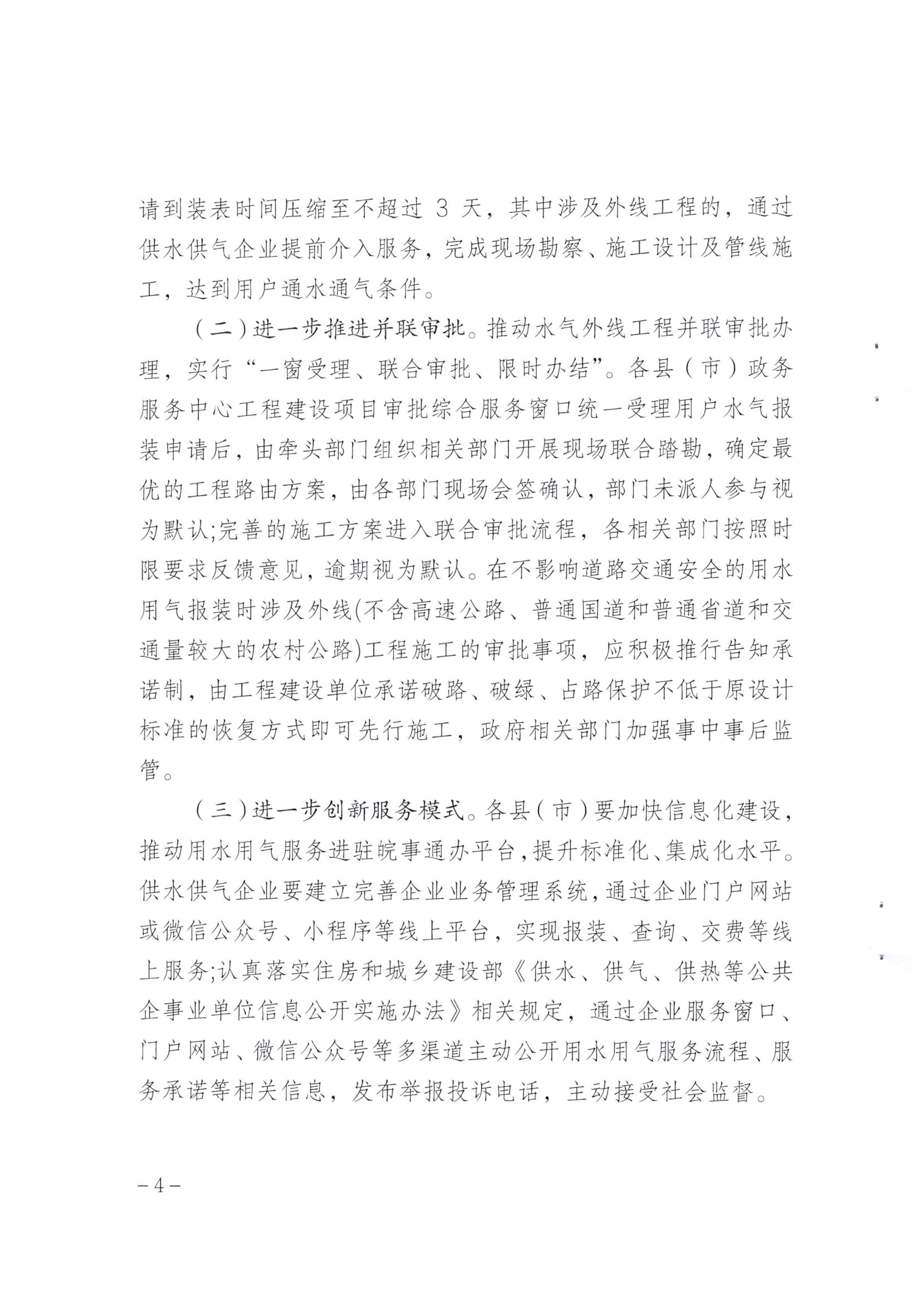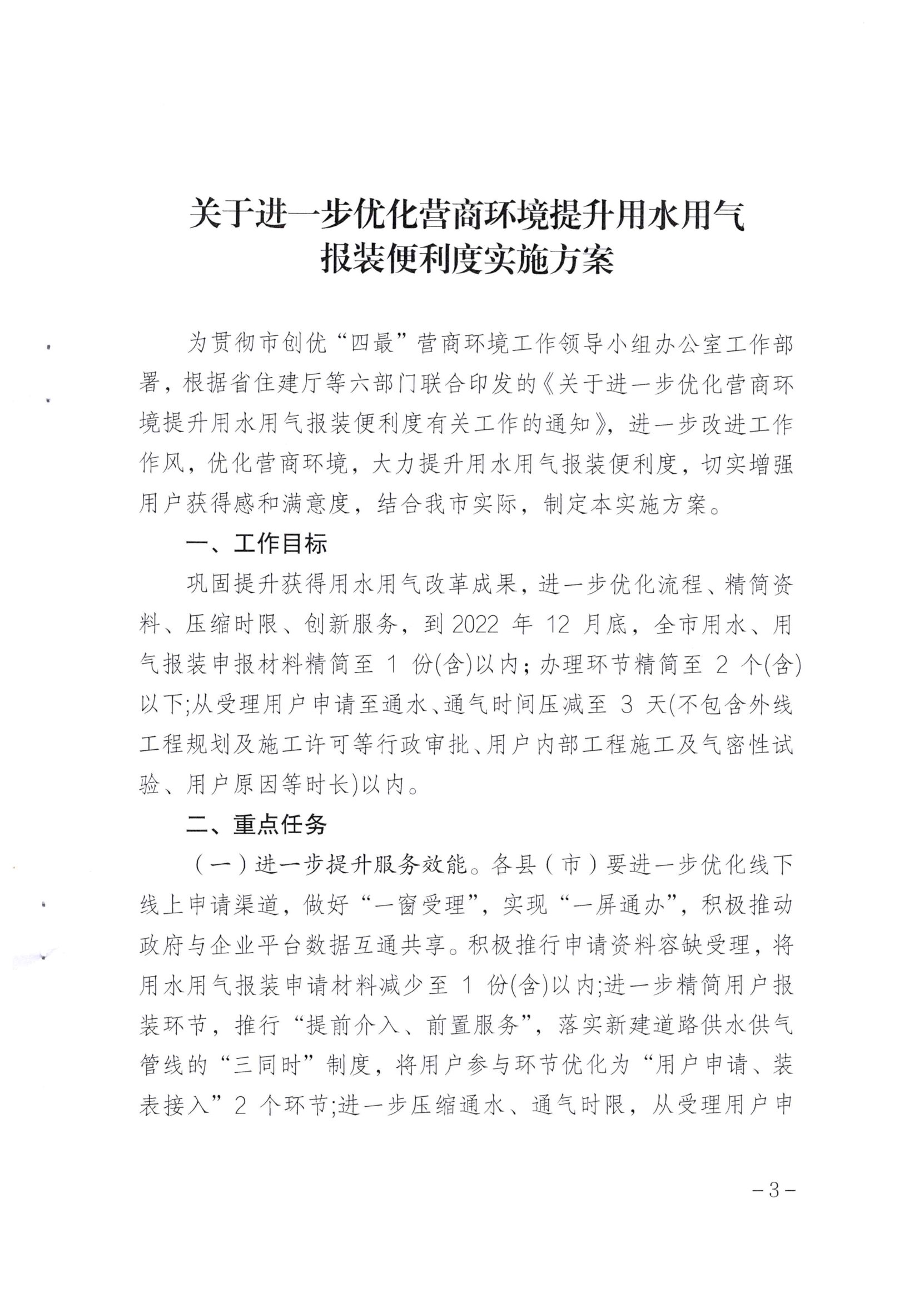 關(guān)于印發(fā)進一步優(yōu)化營商環(huán)境提升用水用氣報裝便利度實施方案的通知