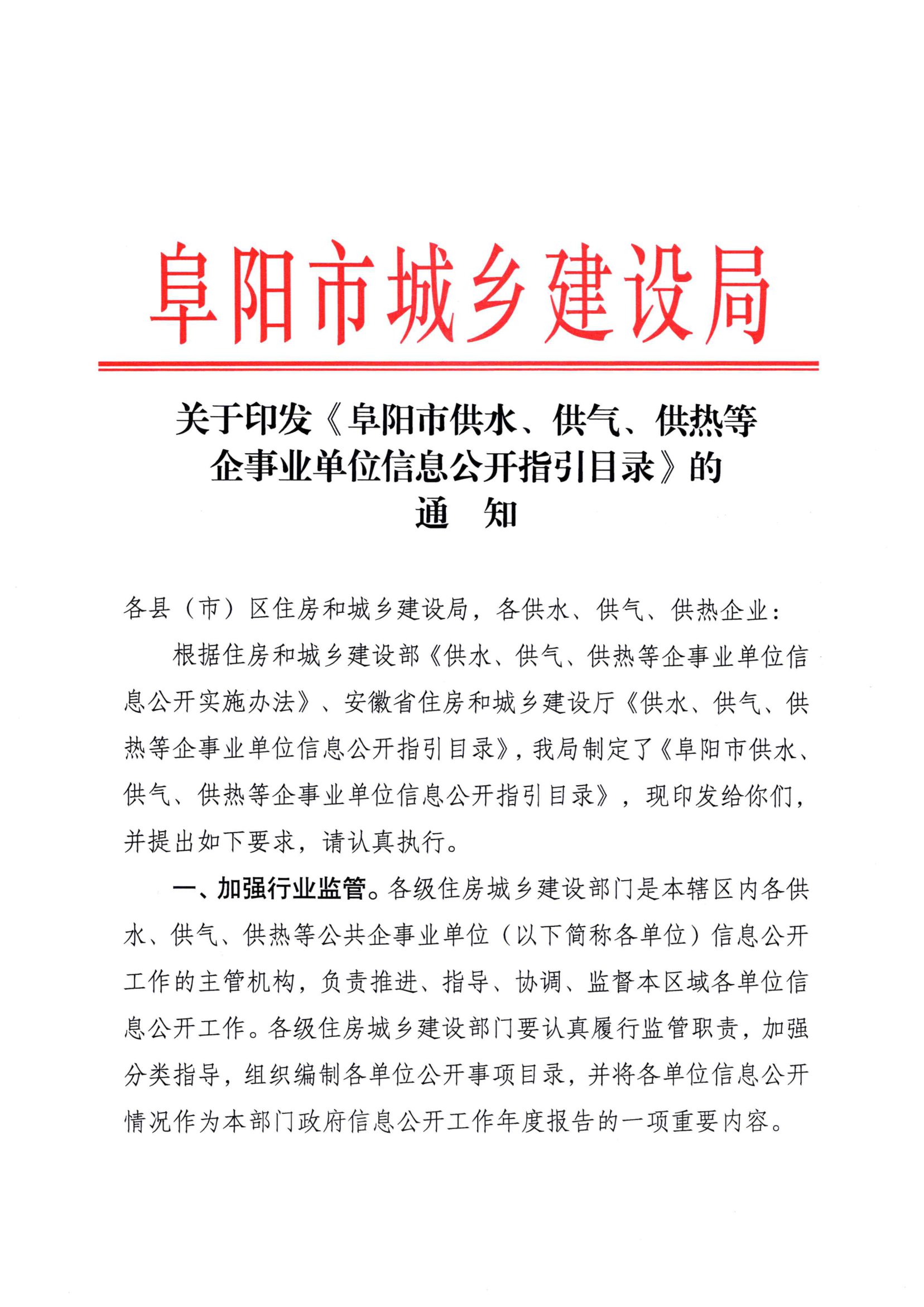 關(guān)于印發(fā)《阜陽(yáng)市供水、供氣、供熱等企事業(yè)單位信息公開(kāi)指引目錄》的通知